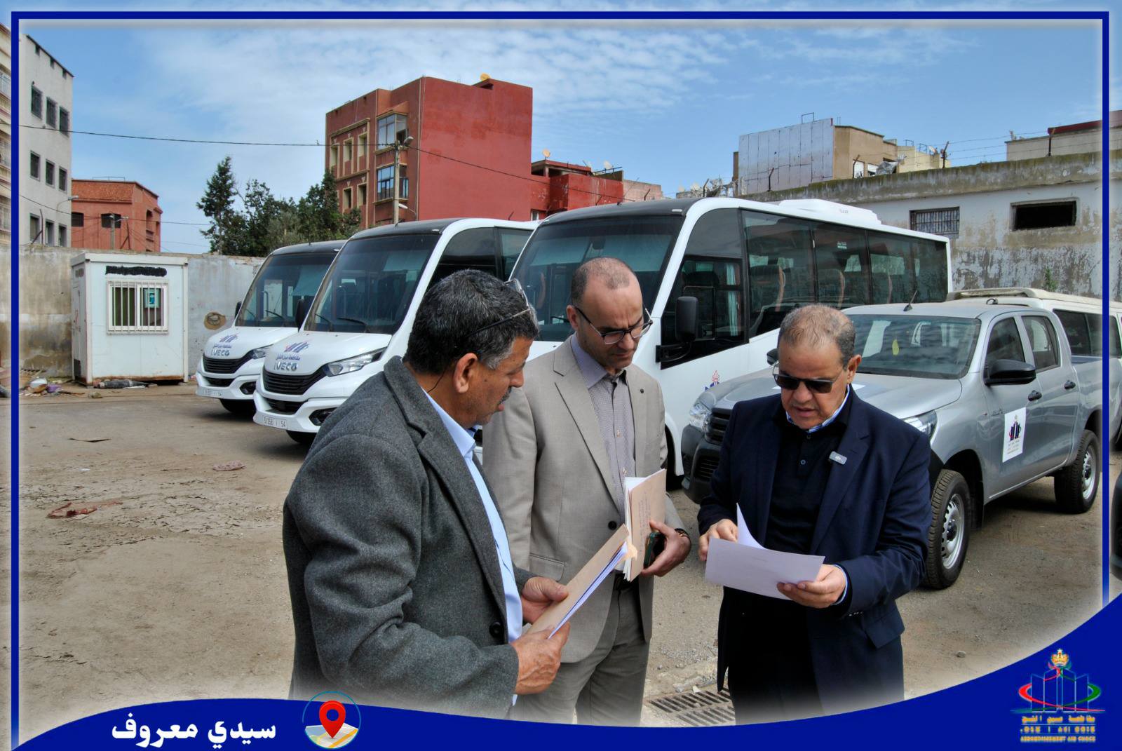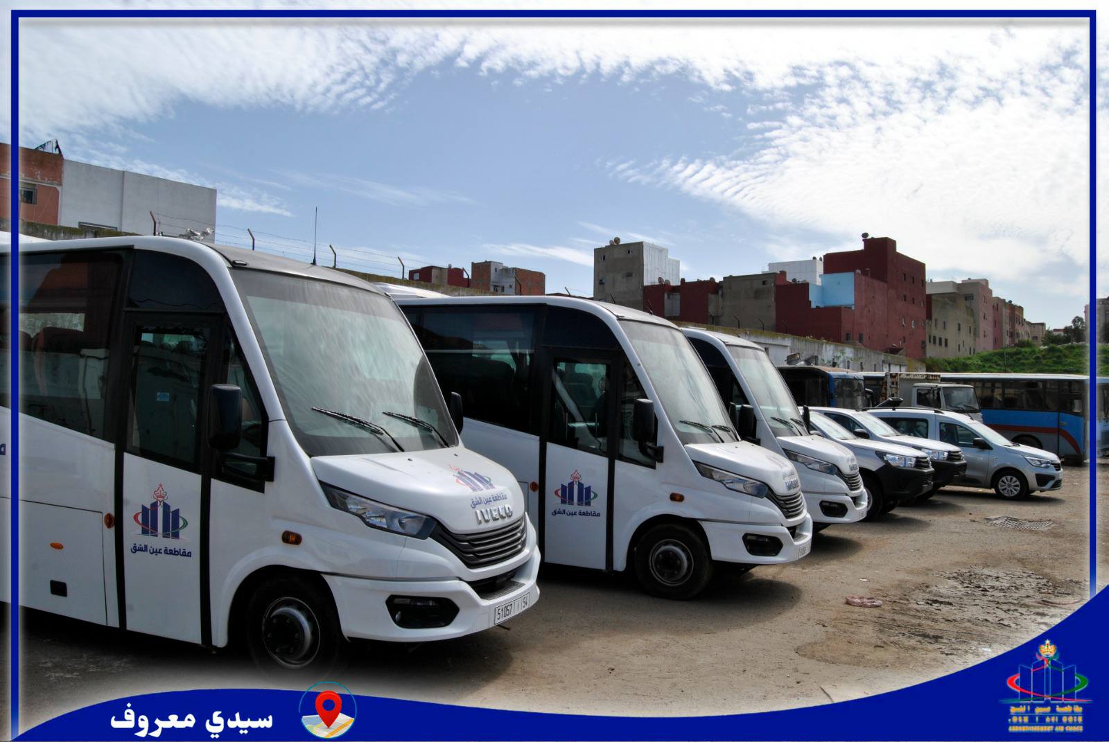 Le président du conseil de l’Arrondissement 'Aïn Chock, M. Mohamed Chafik Ibn Kiran, a supervisé ce matin, mercredi 25 février 2026, au garage de l’Arrondissement à Sidi Marouf, la mise à disposition de plusieurs nouveaux véhicules au service de l’Arrondissement, dans le cadre du renforcement et de l'amélioration des services offerts aux habitants de l’Arrondissement d'Aïn Chock.